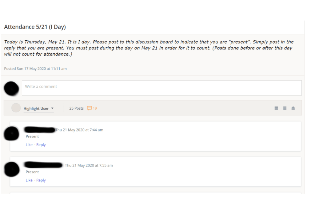 Attendance discussion posts must be filled out on the required day(no earlier, no later).