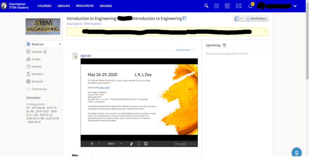 During normal times, my school district managed class materials, tests, and assignments on a platform called Schoology, which is a prebuilt online-dependent learning management system. ( That’s a mouthful!) . With this LMS already in place and in use, I think the transition was rather smooth.