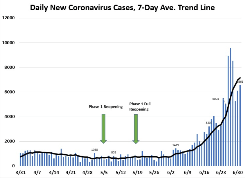My point is, if we reopen, the R0 will inevitably increase, and more people will get sick. Bear with me, for I am not only maundering about hypothetical situations. In the past week, a few states in the U.S have reopened, but are facing terrible consequences.