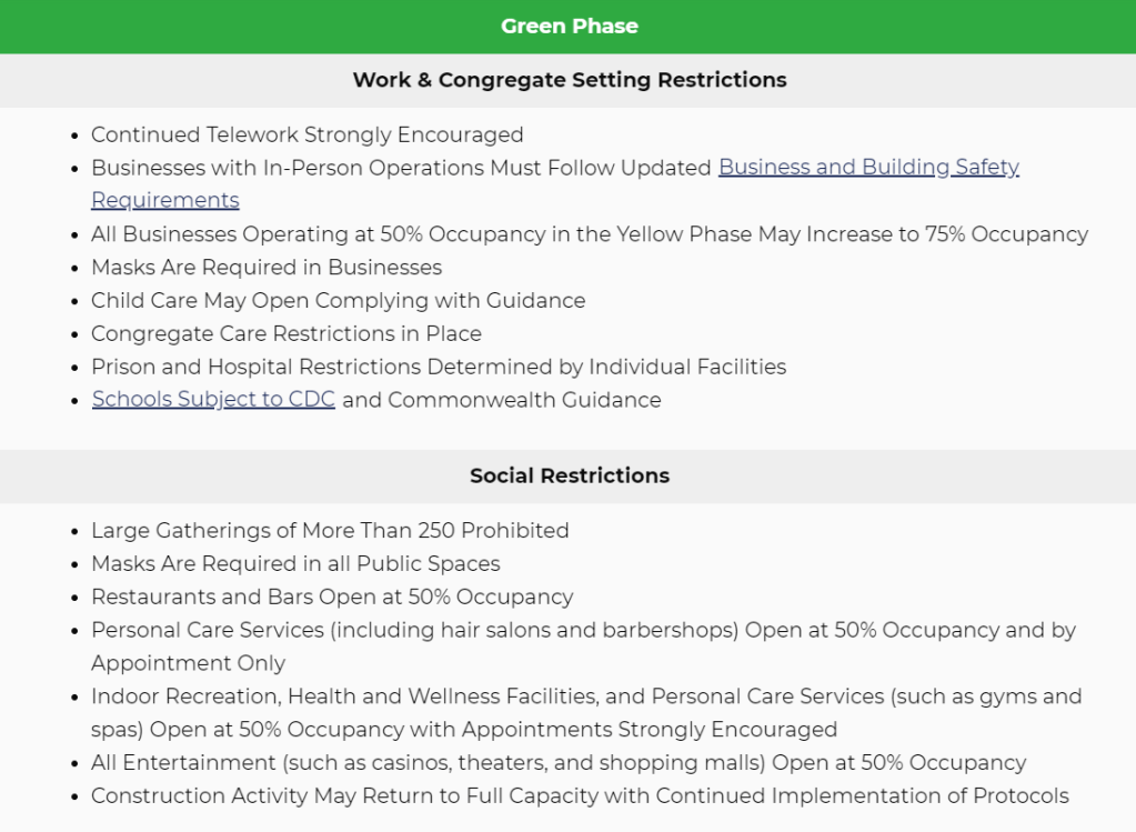 As per the plan, Pennsylvania is in phase 2 – green zone re-opening.