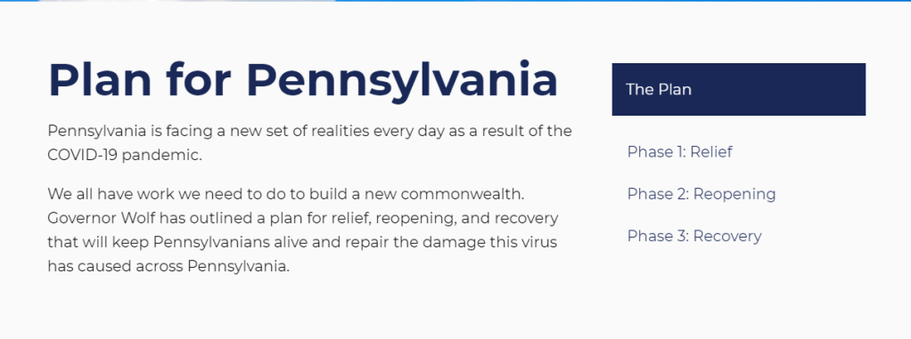 Below is the excellent plan laid out for Pennsylvania by Governor Wolf, and the explanation of the green zone.